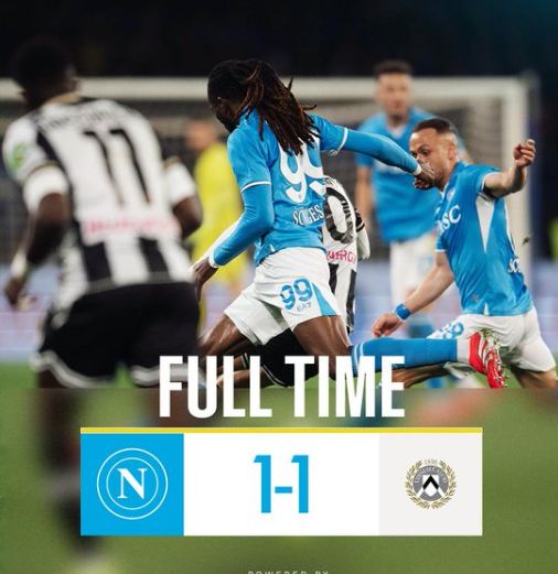 Maradona. Secondo 1-1 in serie, seconda grande chance sprecata dopo il derby di Milano e il recupero di Firenze: ora il vantaggio è di 4 punti, ma i nerazzurri giocheranno oggi ancora con la Fiorentina del napoletano Palladino. In attesa della sfida di San Siro, va registrato il notevole passo indietro della squadra di Conte: stanca e rattoppata a sinistra avendo perso anche Spinazzola dopo Olivera. Una voragine: Mazzocchi ha fatto rimpiangere Spina e non solo per aver regalato