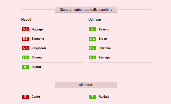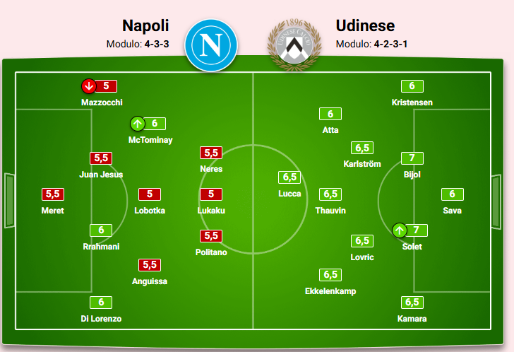 NewsCalcioRassegna Stampa La Gazzetta dice la sua: tra gli azzurri promosso McTominay, mentre Lobotka perde la bussola. Ekkelenkamp si inventa il gol del pareggio By Giuseppe Sacco il Feb 10, 2025 - 09:00:56 0 Condividi Napoli-Udinese, le pagelle: Solet insuperabile, 7. Lukaku fuori partita: 5 Factory della Comunicazione Fonte: Gazzetta CalcioGAZZETTANapolipagelle 0 Condividi FacebookTwitterGoogle+ReddItWhatsAppPinterestE-mail