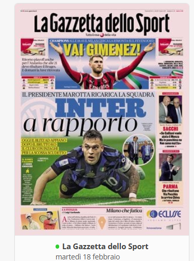 NewsIn EvidenzaRassegna Stampa “RASSEGNA STAMPA”. Le prime pagine sportive nazionali del 18 febbraio By Giuseppe Sacco il Feb 18, 2025 - 07:00:25 0 Condividi In primo piano sulle principali pagine sportive nazionali Factory della Comunicazione CalcioNapoliPagineprime 0 Condividi FacebookTwitterGoogle+ReddItWhatsAppPinterestE-mail