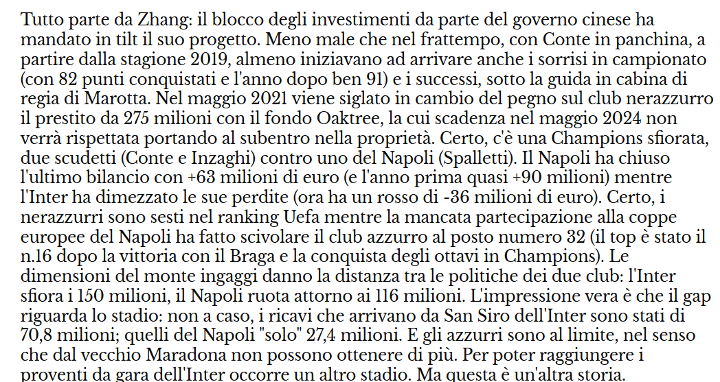 Si avvicina sempre di più il match tanto atteso tra Napoli e Inter e nel mentre, oltre ai paragoni a livello di risultati ottenuti, si fanno paragoni anche a livello monetario.