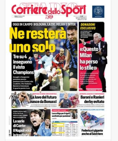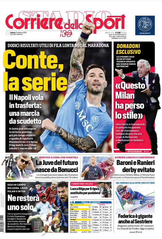 NewsCalcioRassegna Stampa ⚽️RASSEGNA STAMPA⚽️ – Prime pagine sportive del 22 febbraio By Giuseppe Sacco il Feb 22, 2025 - 07:00:01 0 Condividi In primo piano sui principali quotidiani sportivi nazionali Factory della Comunicazione CalcioNapoliRassegnaStampa 0 Condividi FacebookTwitterGoogle+ReddItWhatsAppPinterestE-mail