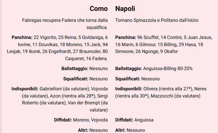 Dopo tre pareggi consecutivi gli azzurri hanno l’obbligo di vincere contro il Como, per mantenere il vantaggio sull’Inter prima dello scontro diretto del prossimo weekend.