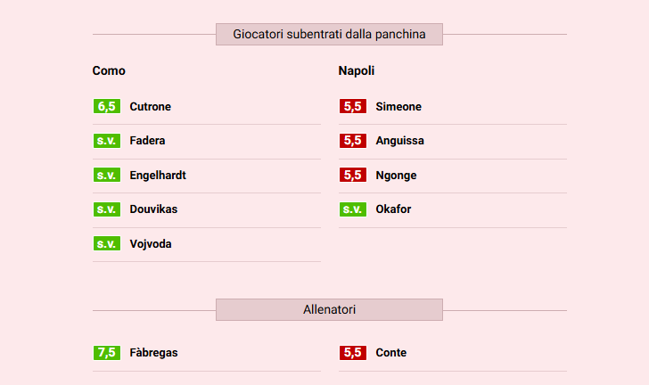 NewsCalcioRassegna Stampa Gazzetta vota: per il Como ottima anche la prestazione di Strefezza, 7. Nella squadra di Conte ci sono appena due sufficienze By Giuseppe Sacco il Feb 24, 2025 - 09:00:05 0 Condividi Le pagelle di Como-Napoli: Nico Paz da sballo, 7.5. Lukaku un fantasma, 5 Factory della Comunicazione Fonte: Gazzetta CalcioComoGAZZETTANapoli 0 Condividi FacebookTwitterGoogle+ReddItWhatsAppPinterestE-mail