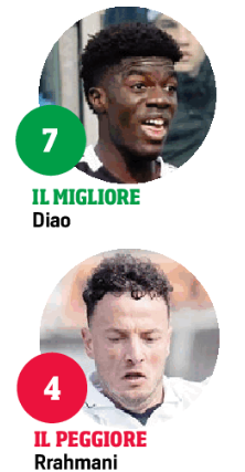 Vittima dell’inspiegabile retropassaggio-tiro di Rrahmani al buio. Di spalle, dopo una rimessa laterale. Era fuori dai pali e defilato a destra, d’accordo, ma il compagno non può dargliela senza neanche uno sguardo.