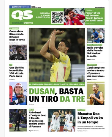 Su X.comCalcioIn Evidenza “RASSEGNA STAMPA” – Le prime pagine sportive del 24 febbraio By Giuseppe Sacco il Feb 24, 2025 - 07:00:19 0 Condividi In primo piano sui principali quotidiani sportivi nazionali Factory della Comunicazione CalcioNapoliRassegnaStampa 0 Condividi FacebookTwitterGoogle+ReddItWhatsAppPinterestE-mail