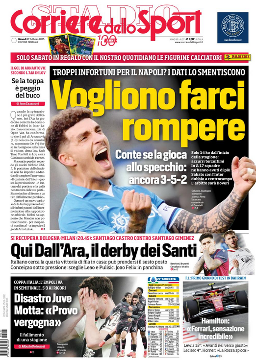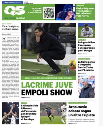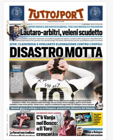Su X.comCalcioNews “RASSEGNA STAMPA” – ‘Prime pagine sportive del 27 febbraio’ By Giuseppe Sacco il Feb 27, 2025 - 07:00:30 0 Condividi In primo piano sui principali quotidiani sportivi nazionali Factory della Comunicazione CalcioNapoliRassegnaStampa 0 Condividi FacebookTwitterGoogle+ReddItWhatsAppPinterestE-mail