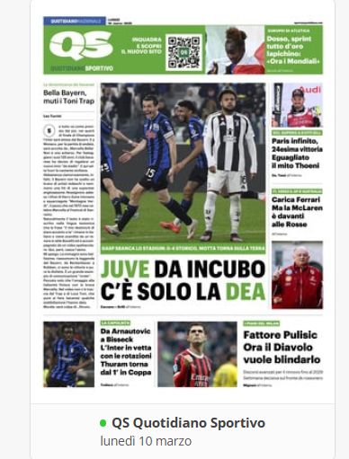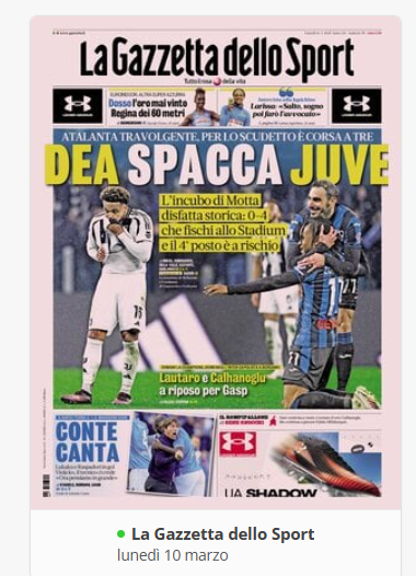 Su X.comCalcioNews ⚽️⚽️RASSEGNA STAMPA⚽️⚽️ – Prime pagine sportive del 10 marzo By Giuseppe Sacco il Mar 10, 2025 - 07:00:50 0 Condividi In primo piano sui principali quotidiani sportivi nazionali Factory della Comunicazione CalcioNapoliRassegnaStampa 0 Condividi FacebookTwitterGoogle+ReddItWhatsAppPinterestE-mail