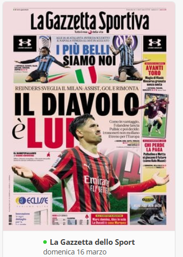 NewsCalcioIn Evidenza “RASSEGNA STAMPA” – Le prime pagine sportive nazionali del 16 marzo By Giuseppe Sacco il Mar 16, 2025 - 07:00:05 0 Condividi In primo piano sui principali quotidiani sportivi nazionali Factory della Comunicazione CalcioNapoliRassegnaStampa 0 Condividi FacebookTwitterGoogle+ReddItWhatsAppPinterestE-mail
