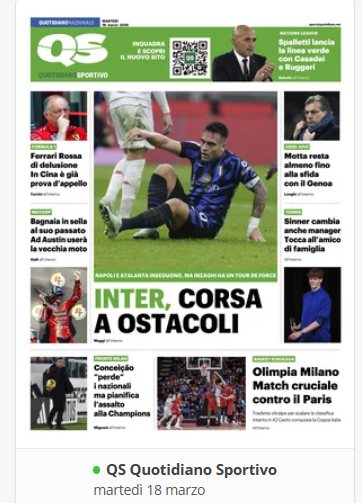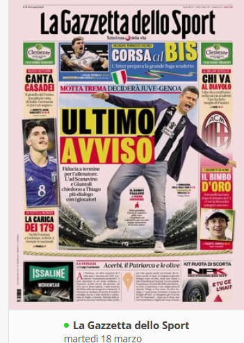 Su X.comCalcioIn Evidenza ⚽️RASSEGNA STAMPA⚽️ – Prime pagine sportive del 18 marzo By Giuseppe Sacco il Mar 18, 2025 - 07:00:08 0 Condividi In primo piano sui principali quotidiani sportivi nazionali Factory della Comunicazione CalcioNapoliPagineprime 0 Condividi FacebookTwitterGoogle+ReddItWhatsAppPinterestE-mail