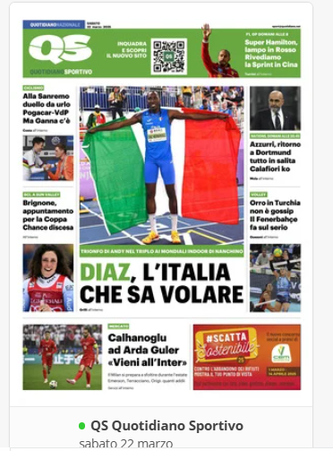 NewsCalcioIn Evidenza “Rassegna stampa” – Prime pagine sportive del 22 marzo By Giuseppe Sacco il Mar 22, 2025 - 07:00:38 0 Condividi In primo piano sui principali quotidiani sportivi nazionali Factory della Comunicazione CalcioNapoliRassegnaStampa 0 Condividi FacebookTwitterGoogle+ReddItWhatsAppPinterestE-mail