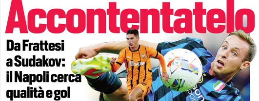 Conte ha sottolineato l’esigenza di rinforzare la squadra per affrontare il doppio impegno in vista dell’ormai imminente ritorno in Europa Interventi previsti a centrocampo per aumentare le soluzioni di gioco e incrementare il carnet dei gol: Sudakov, Frattesi e Gabri Veiga profili in lista Manna.