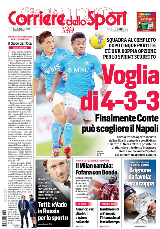 NewsCalcioIn Evidenza “Rassegna stampa” – Prime pagine sportive nazionali del 26 marzo By Giuseppe Sacco il Mar 26, 2025 - 07:00:16 0 Condividi In primo piano sui principali quotidiani sportivi nazionali Factory della Comunicazione CalcioNapoliRassegnaStampa 0 Condividi FacebookTwitterGoogle+ReddItWhatsAppPinterestE-mail