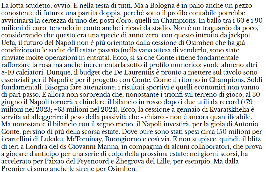 NewsCalcioRassegna Stampa Jackpot Champions, AdL potrà aumentare il monte ingaggi. Ecco quanto ne ricaverà il Calcio Napoli In ballo tra i 60 e i 90 milioni By Giuseppe Sacco il Apr 3, 2025 - 09:30:57 0 Condividi Tratto dalle pagine de Il Mattino Factory della Comunicazione <ChampionsCalcioNapolisoldi 0 Condividi FacebookTwitterGoogle+ReddItWhatsAppPinterestE-mail