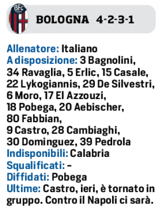 (Grafico) Il Corriere dello Sport mette in campo Bologna e Napoli