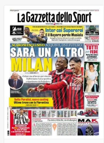 XCalcioNews “RASSEGNA STAMPA” – Prime pagine sportive del 5 aprile By Giuseppe Sacco il Apr 5, 2025 - 07:00:38 0 Condividi In primo piano sui principali quotidiani sportivi nazionali Factory della Comunicazione CalcioNapoliRassegnaStampa 0 Condividi FacebookTwitterGoogle+ReddItWhatsAppPinterestE-mail