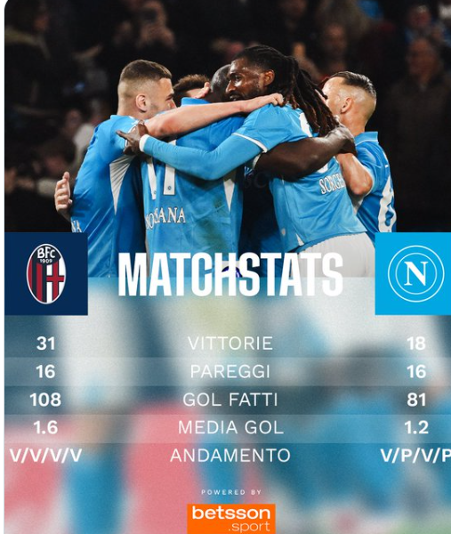 Il Bologna è la squadra contro cui il Napoli ha realizzato il maggior numero di gol nella sua storia in Serie A: 197.