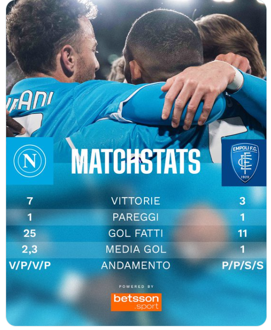 L’Empoli non vince in Serie A da 16 giornate, 5 pareggi e 11 sconfitte. L’ultimo successo in questa stagione risale alla sfida dell’8 dicembre del 2024: vittoria per 1-4 in trasferta contro il Verona.