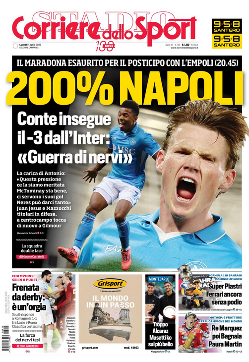 Su X.comCalcioIn Evidenza “RASSEGNA STAMPA” – Le prime pagine sportive del 14 aprile By Giuseppe Sacco il Apr 14, 2025 - 07:00:59 0 Condividi In primo piano sui principali quotidiani sportivi nazionali Factory della Comunicazione CalcioNapoliRassegnaStampa 0 Condividi FacebookTwitterGoogle+ReddItWhatsAppPinterestE-mail