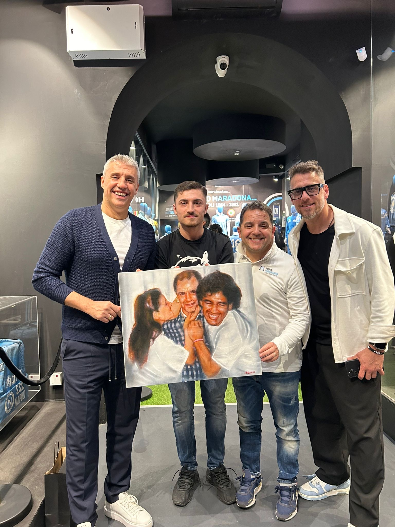 Dopo la cena, Crespo e Denis hanno visitato il Museo Maradona nei Quartieri Spagnoli, dove sono custoditi oltre cento cimeli autentici appartenuti al campione argentino. Tra maglie storiche, scarpini e trofei, i due ex bomber hanno ripercorso le gesta del mito che ha segnato non solo la storia di Napoli, ma anche quella del calcio mondiale.