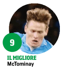 Spacca in due il Torino e la partita con l’invito al bacio per la prima rete di McTominay. Quarto assist e sei gol fanno dieci reti nate dai suoi inserimenti letali e telecomandati. Esce per una botta al fianco.