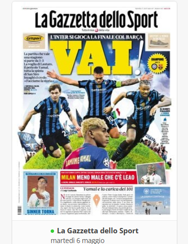 NewsCalcioIn Evidenza “RASSEGNA STAMPA” – ⚽️Prime pagine sportive del 6 maggio⚽️ By Giuseppe Sacco il Mag 6, 2025 - 07:00:37 0 Condividi In primo piano sui principali quotidiani sportivi nazionali Factory della Comunicazione CalcioNapoliRassegnaStampa 0 Condividi FacebookTwitterGoogle+ReddItWhatsAppPinterestE-mail