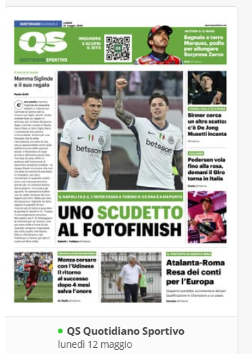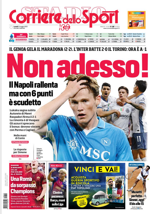 XCalcioIn Evidenza “RASSEGNA STAMPA” – Prime pagine sportive del 12 maggio By Giuseppe Sacco il Mag 12, 2025 - 07:00:46 0 Condividi In primo piano sui principali quotidiani sportivi nazionali Factory della Comunicazione CalcioNapoliRasegnaStampa 0 Condividi FacebookTwitterGoogle+ReddItWhatsAppPinterestE-mail