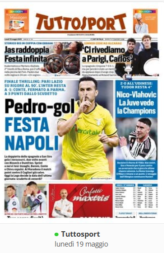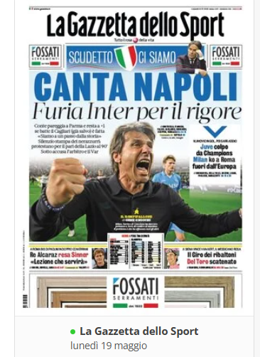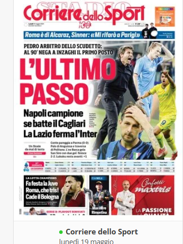 XCalcioNews “RASSEGNA STAMPA” — Prime pagine sportive del 19 maggio By Giuseppe Sacco il Mag 19, 2025 - 07:00:33 0 Condividi In primo piano sui principali quotidiani sportivi nazionali Factory della Comunicazione CalcioNapoliRassegnaStampa 0 Condividi FacebookTwitterGoogle+ReddItWhatsAppPinterestE-mail