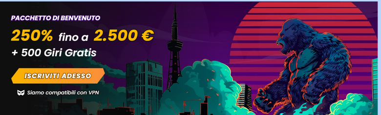 Wild Tokyo è un casinò dallo stile cyberpunk che combina un’interfaccia moderna con una vasta gamma di slot e giochi da tavolo. Offre bonus competitivi per nuovi iscritti senza necessità di deposito iniziale.