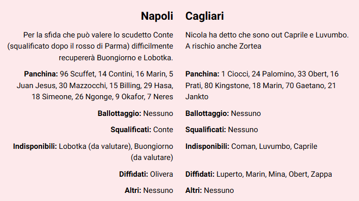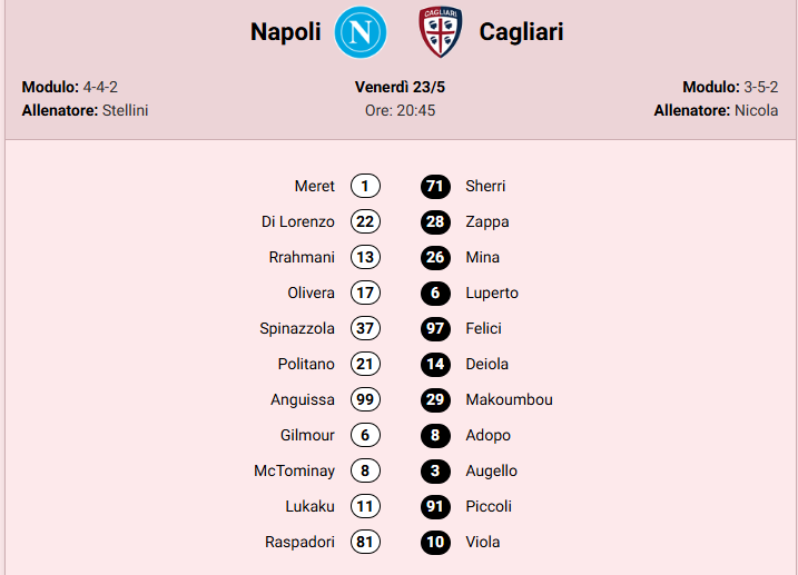 Dubbio in avanti per l’allenatore dei partenopei. Quello dei sardi potrebbe far riposare Caprile per dare una chance a Ciocci