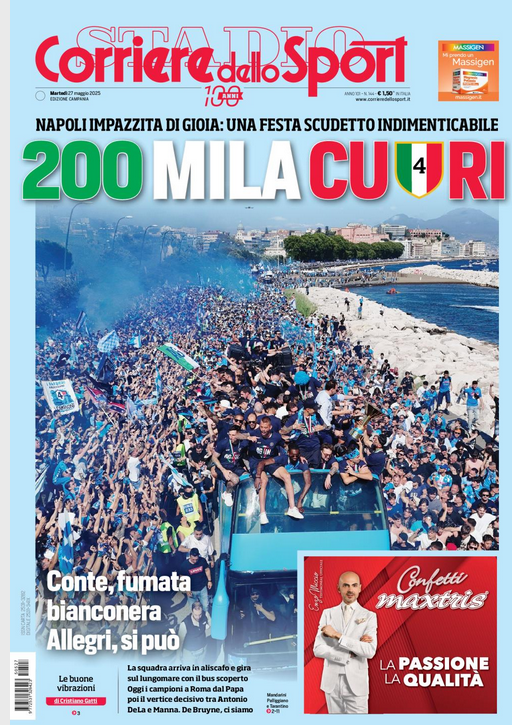 NewsCalcioRassegna Stampa 😀buongiorno da ilnapolionline.com ⚽️RASSEGNA STAMPA⚽️ PRIME PAGINE DEL 27 MAGGIO By Giuseppe Sacco il Mag 27, 2025 - 07:00:24 0 Condividi In primo piano sui principali quotidiani sportivi nazionali Factory della Comunicazione CalcioNapoliRassegnaStampa 0 Condividi FacebookTwitterGoogle+ReddItWhatsAppPinterestE-mail