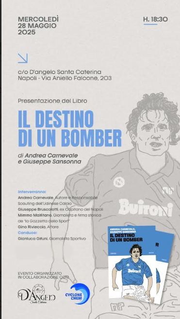 Napoli, 25 maggio 2025 Mercoledì, 28 maggio 2025, alle ore 18:30, a Napoli, presso il ristorante D’Angelo Santa Caterina (via Aniello Falcone, 203), avrà luogo la presentazione, per la prima volta in città, del libro “Il destino di un bomber”, scritto da Andrea Carnevale e Giuseppe Sansonna, pubblicato da 66thand2nd nella collana Booksport: