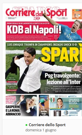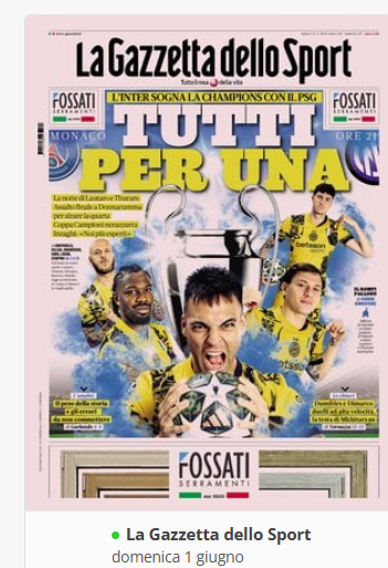 NewsCalcioIn Evidenza “RASSEGNA STAMPA” – Prime pagine sportive del 1° giugno By Giuseppe Sacco il Giu 1, 2025 - 07:00:52 0 Condividi In primo piano sui principali quotidiani sportivi nazionali Factory della Comunicazione CalcioNapoliRassegnaStampa 0 Condividi FacebookTwitterGoogle+ReddItWhatsAppPinterestE-mail