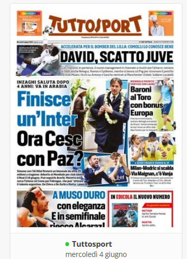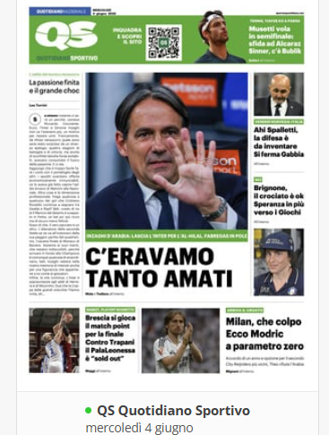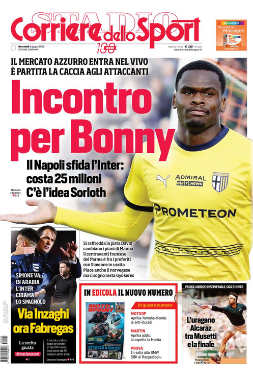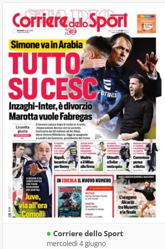 NewsCalcioIn Evidenza “RASSEGNA STAMPA” – PRIME PAGINE SPORTIVE NAZIONALI del 4 giugno By Giuseppe Sacco il Giu 4, 2025 - 07:00:57 0 Condividi In primo piano sui principali quotidiani sportivi nazionali Factory della Comunicazione CalcioNapoliRassegnaStampa 0 Condividi FacebookTwitterGoogle+ReddItWhatsAppPinterestE-mail