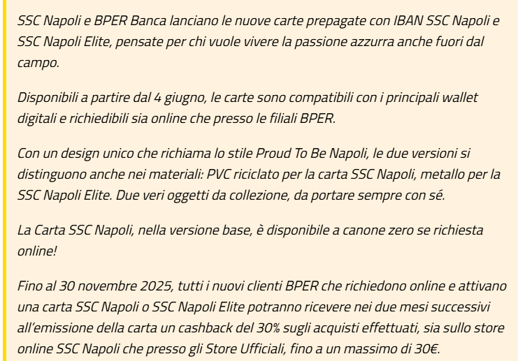 NewsCalcioIn Evidenza UFFICIALE – Le nuove carte bancomat della SSC Napoli By Giuseppe Sacco il Giu 4, 2025 - 13:00:34 0 Condividi Arrivano le nuove Carte SSC Napoli di BPER Banca per i tifosi azzurri! Factory della Comunicazione bancomatCarteNapoli 0 Condividi FacebookTwitterGoogle+ReddItWhatsAppPinterestE-mail
