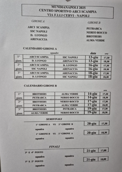 MUNDIALITO – Oggi: (Arci Scampia/ SSC Napoli)- Dal 13 al 21 giugno presso “Centro Sportivo ARCI SCAMPIA”