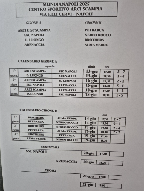 MUNDIALITO 2025 – Gare del 18 giugno. L’Arci Scampia manca l’accesso alla semifinale