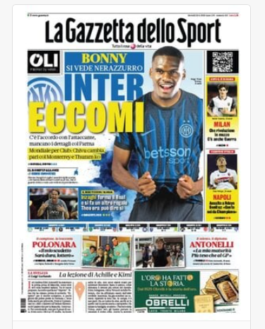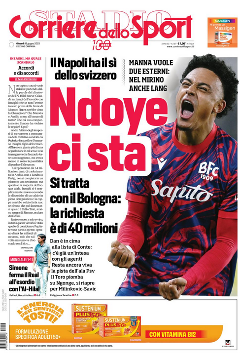NewsCalcioIn Evidenza RASSEGNA STAMPA” – Prime pagine sportive del 19 giugno By Giuseppe Sacco il Giu 19, 2025 - 07:00:45 0 Condividi In primo piano sui principali quotidiani sportivi nazionali Factory della Comunicazione CalcioNapolirassegna stampa 0 Condividi FacebookTwitterGoogle+ReddItWhatsAppPinterestE-mail
