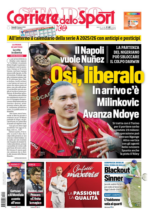 XCalcioIn Evidenza “RASSEGNA STAMPA” – Prime pagine sportive del 20 giugno By Giuseppe Sacco il Giu 20, 2025 - 07:00:21 0 Condividi In prim o piano sui principali quotidiani sportivi nazionali Factory della Comunicazione CalcioNapolRassegnaStampa 0 Condividi FacebookTwitterGoogle+ReddItWhatsAppPinterestE-mail