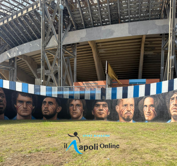 Dino Zoff, Kalidou Koulibaly, Beppe Bruscolotti, Ruud Krol, Marek Hamsik, Faouzi Ghoulam, il capitano Totonno Juliano, il capitano dei capitani l’immortale Diego Armando Maradona, Dries Mertens, Antonio Careca e Edinson Cavani. Sono loro i calciatori della storia del Napoli scelti per essere gli 11 giocatori nel murales di Jorit, che da oggi si stagliano davanti allo stadio Diego Armando Maradona con gli inconfondibili segni tribali sulle guance, segno distintivo delle opere dell’artista di Quarto.