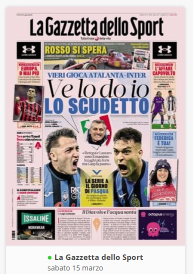 NewsCalcioRassegna Stampa “RASSEGNA STAMPA” – Le prime pagine sportive del 15 marzo By Giuseppe Sacco il Mar 15, 2025 - 07:00:23 0 Condividi In primo piano sui principali quotidiani sportivi nazionali Factory della Comunicazione CalcioNapoliRassegnaStampa 0 Condividi FacebookTwitterGoogle+ReddItWhatsAppPinterestE-mail